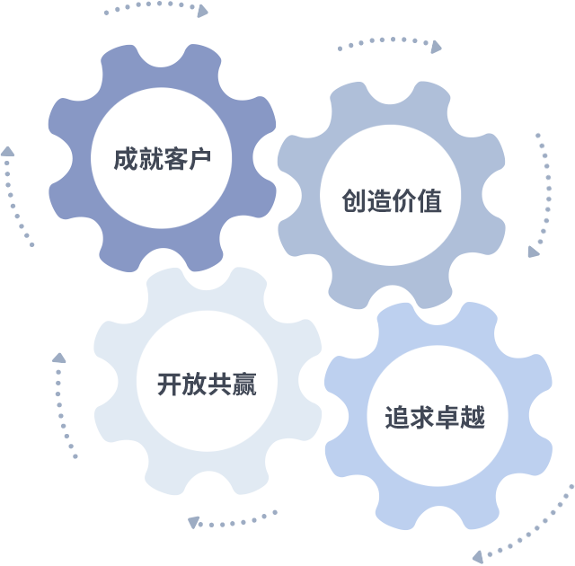 成就客户是一切决策的出发点,创造价值是衡量所有工作的标准,追求卓越是e世博esb做事做人的态度,开放共赢是e世博esb的格局也是最终的结果。价值观的齿轮环环相扣,推动着组织里的每个人不断向前。